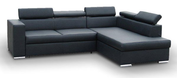Moderná rohová sedačka v jednofarebnom prevedení čiernej ekokože pôsobí veľmi luxusne a zvýrazní priestor Vašej obývacej izby. Pre zvýšenie pohodlia sú opierky hlavy polohovateľné pre dokonalý odpočinok. Ak by Vás odpočinok priviedol až k spánku, jednoduchým pohybom ju rozložíte, čím vznikne plocha na prespanie. Z úložného priestoru si môžete vybrať prikrývky alebo posteľné prádlo.
