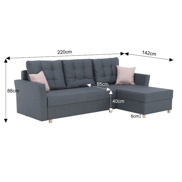 Rohová univerzálna sedačka Luton je vhodná pravého aj ľavého rohu. Sedačka je rozkladacia, takže získate aj plochu na spanie s rozmermi 120 x 198 cm a nechýba ani úložný priestor. Sedenie aj opierky sú pohodlné - molitanové. Súčasťou sú tiež 2 vankúše.