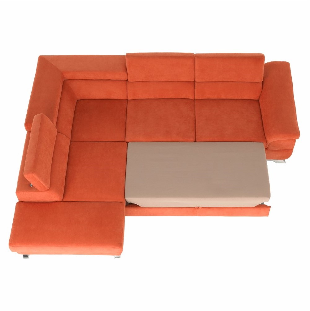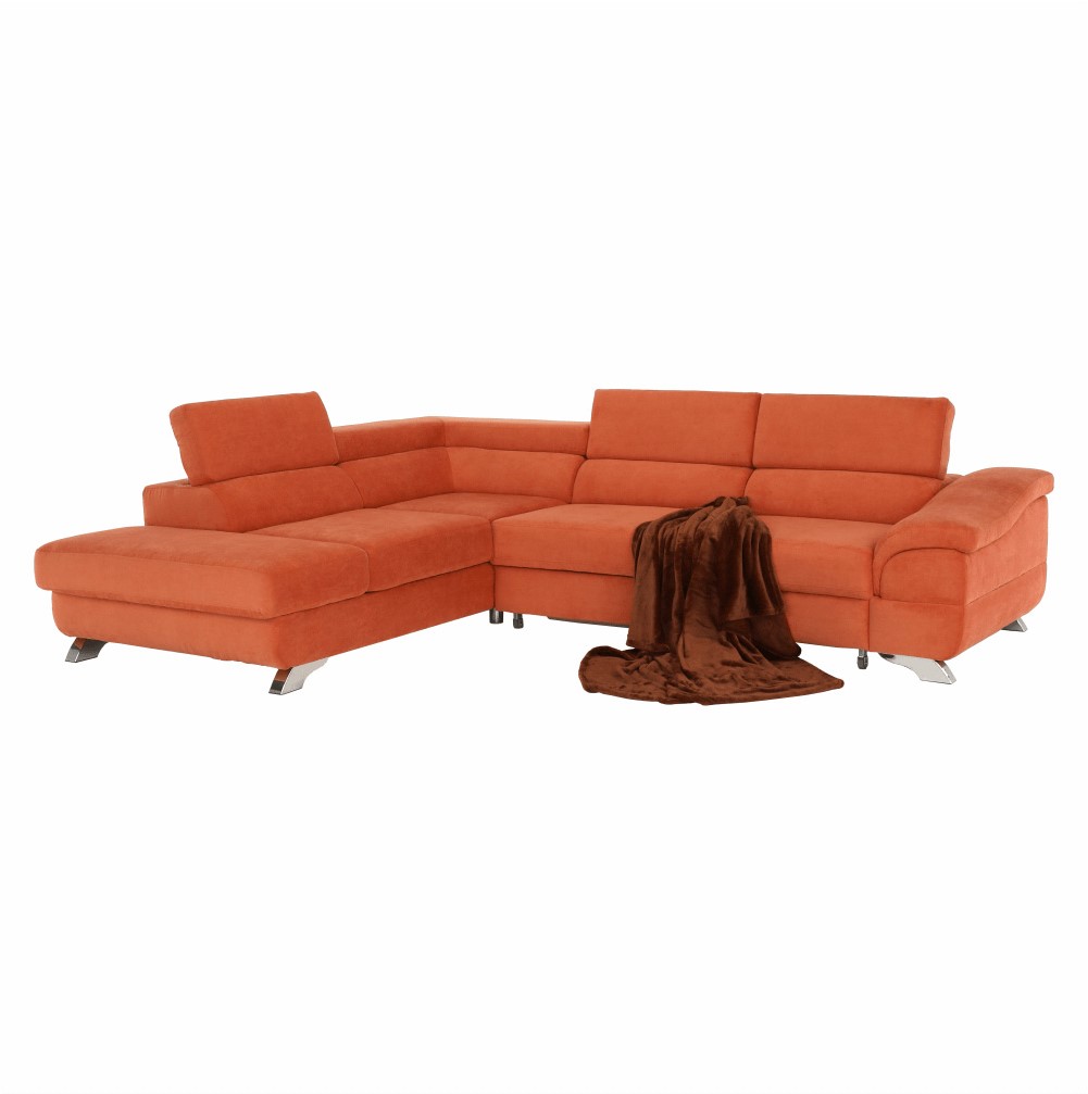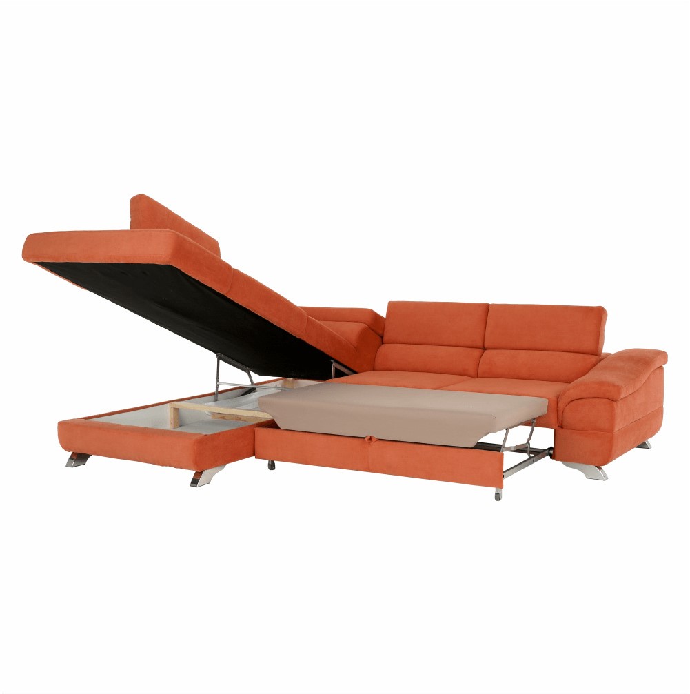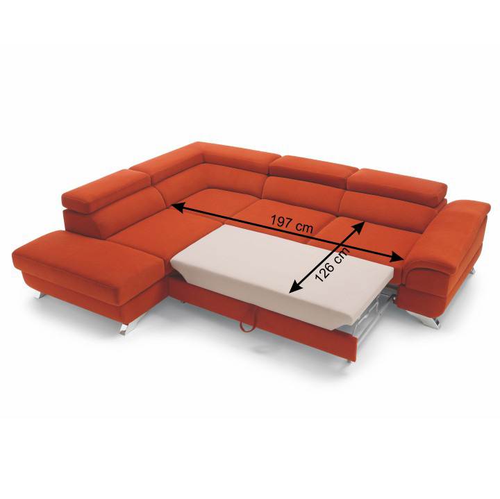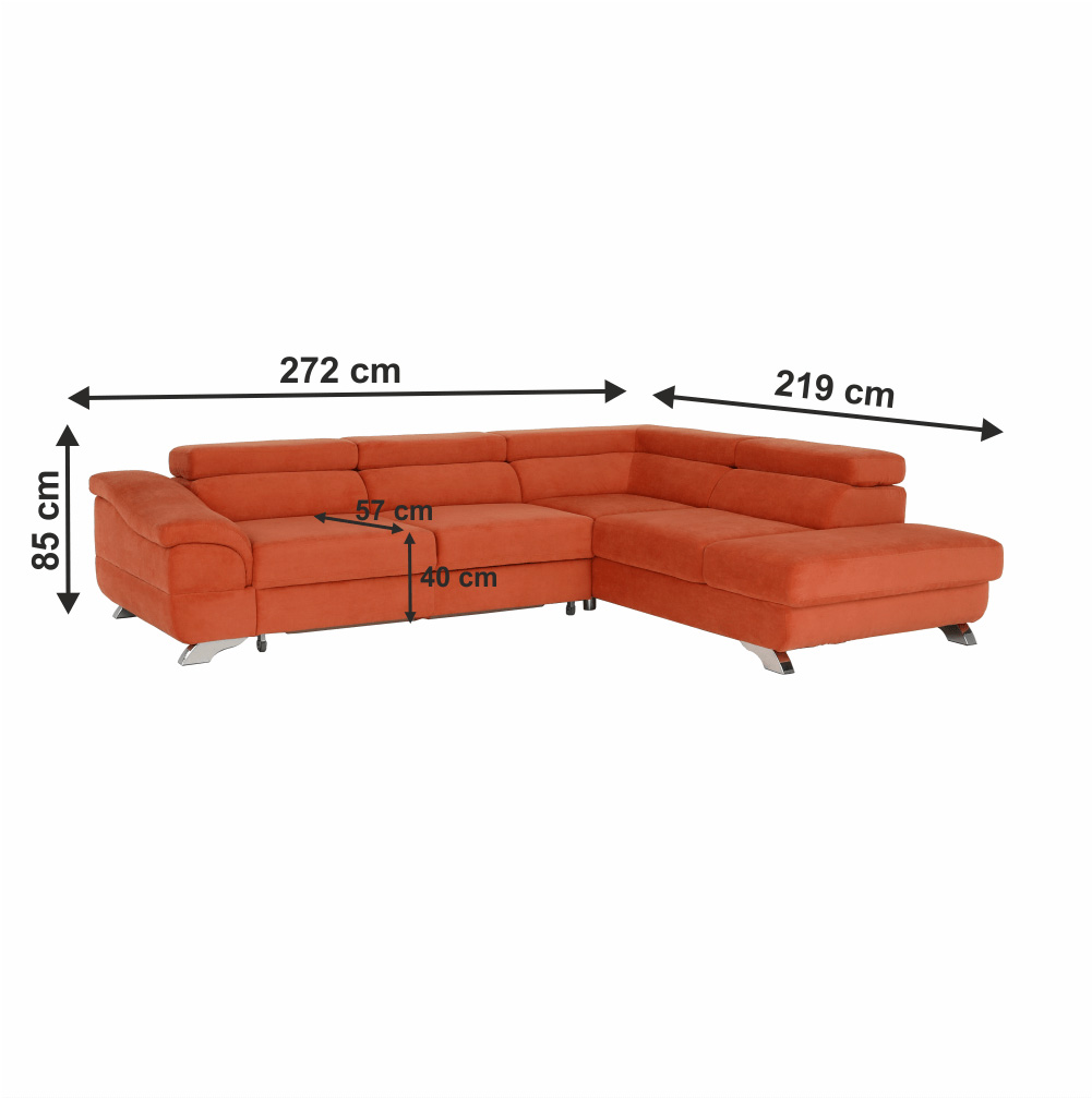 Rohová sedačka Lyng (oranžová) (L) s výškou 85 cm a hĺbkou 219 cm je ideálnym kúskom nábytku pre vzácne okamihy. Je to veľká a maximálne pohodlná sedačka, vyrobená v štýlovom dizajne. Je čalúnená látkou Soro 51 v farbe tarakota, vrátane zadnej strany, takže ju môžete umiestniť kdekoľvek v miestnosti. Polohovacie opierky hlavy zabezpečia maximálny komfort počas sedenia a podporia vašu hlavu v až piatich rôznych polohách. Sedačka je tiež rozkladacia na príležitostné lôžko s rozmerom 126x197 cm a má úložný priestor v otomane bez opierky. Čelná časť sedačky je vybavená dvomi prídavnými kolieskami, stačí potiahnuť rozkladaciu časť a získate komfortnú plochu na spanie. Sedačka má moderný look a originálne dizajnové nožičky. Má celočalúnené pružinové výplne a nosnosť na osobu je 90 kg. Poznámka: Sedačka má ľavé prevedenie.