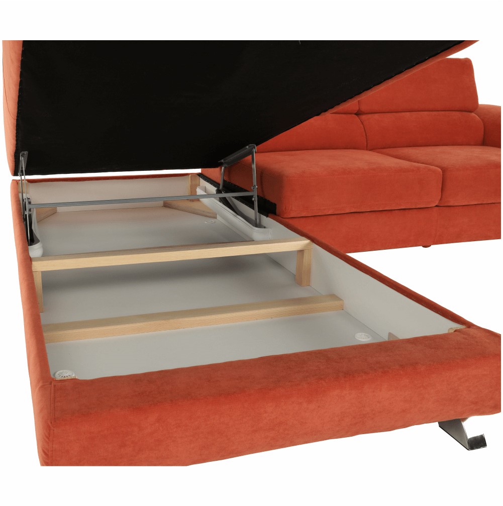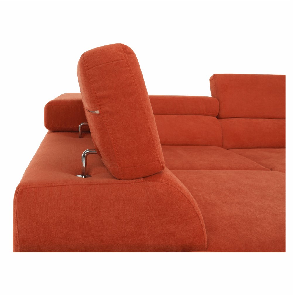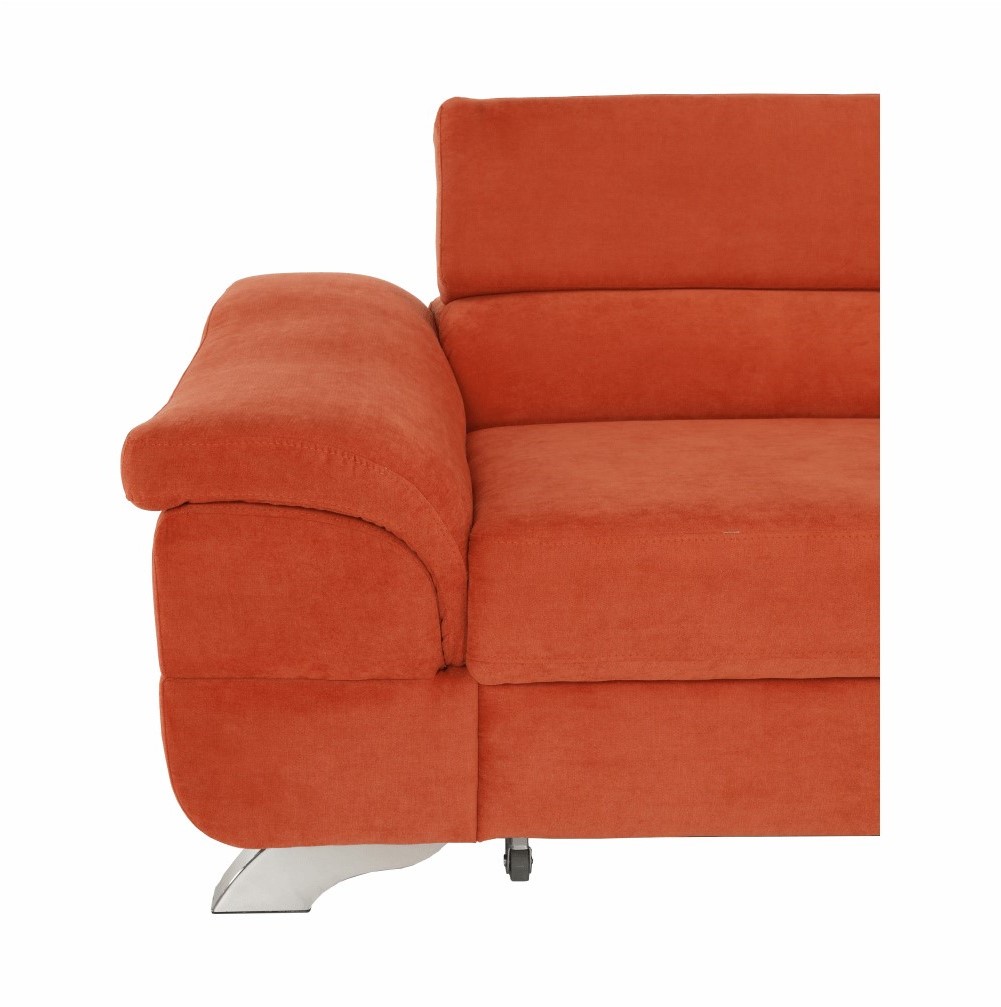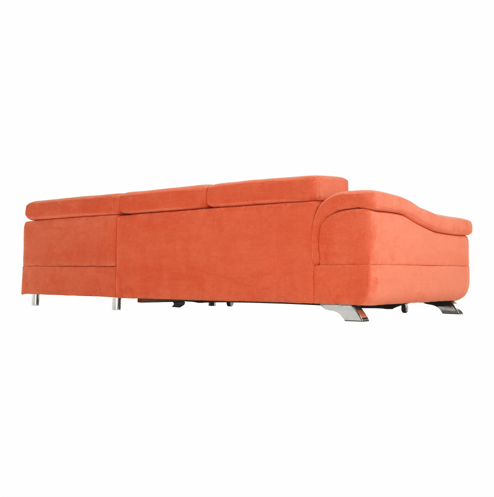 Rohová sedačka Lyng (oranžová) (L) s výškou 85 cm a hĺbkou 219 cm je ideálnym kúskom nábytku pre vzácne okamihy. Je to veľká a maximálne pohodlná sedačka, vyrobená v štýlovom dizajne. Je čalúnená látkou Soro 51 v farbe tarakota, vrátane zadnej strany, takže ju môžete umiestniť kdekoľvek v miestnosti. Polohovacie opierky hlavy zabezpečia maximálny komfort počas sedenia a podporia vašu hlavu v až piatich rôznych polohách. Sedačka je tiež rozkladacia na príležitostné lôžko s rozmerom 126x197 cm a má úložný priestor v otomane bez opierky. Čelná časť sedačky je vybavená dvomi prídavnými kolieskami, stačí potiahnuť rozkladaciu časť a získate komfortnú plochu na spanie. Sedačka má moderný look a originálne dizajnové nožičky. Má celočalúnené pružinové výplne a nosnosť na osobu je 90 kg. Poznámka: Sedačka má ľavé prevedenie.