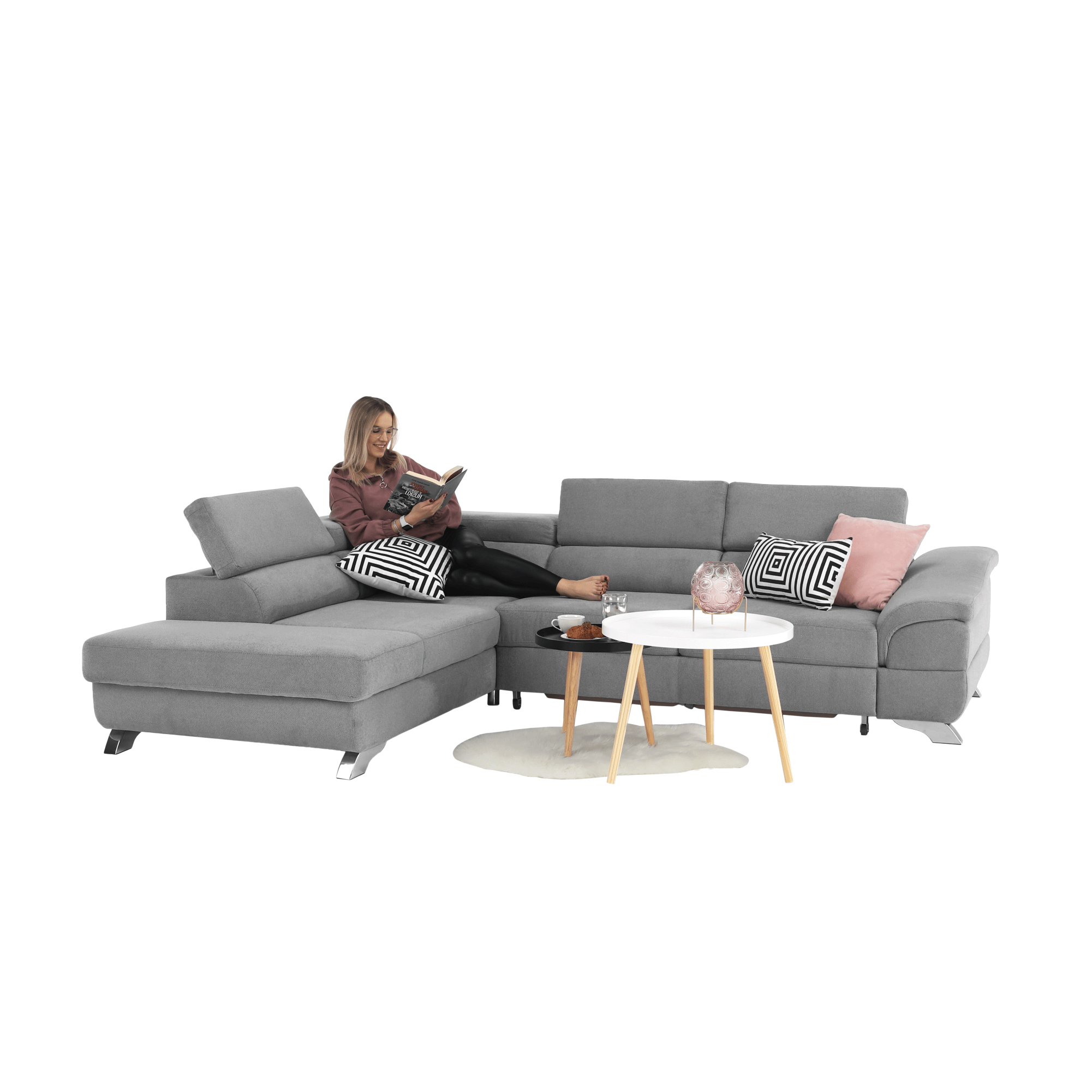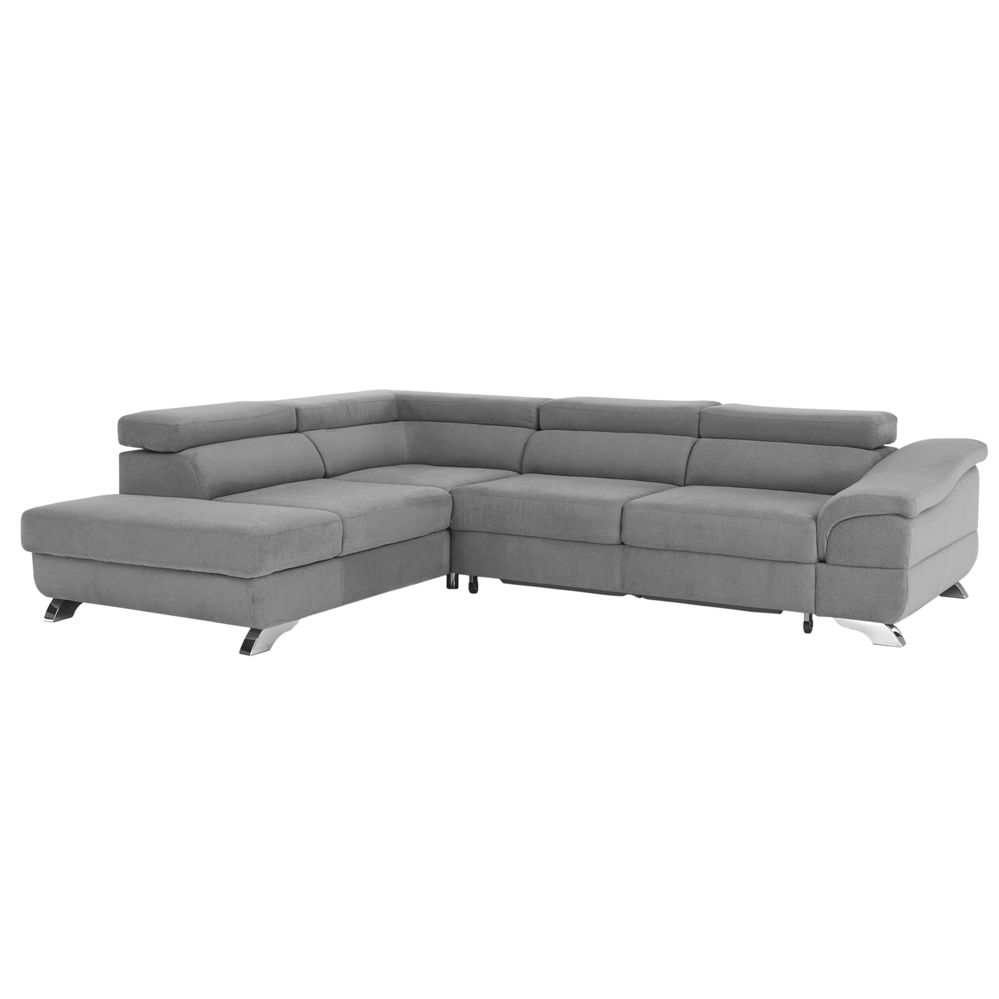 Rohová sedačka - Lyng (sivá) (L) je moderné pohodlné sedenie pre Váš obývací priestor. Sedačka je čalúnená látkou BONN v sivej farbe, vrátane zadnej strany, takže ju môžete umiestniť aj do priestoru. Polohovacie opierky hlavy zabezpečia maximálny komfort počas sedenia. Sedačku môžete jednoducho rozložiť pomocou 2 prídavných koliesok na pohodlnú plochu na spanie s rozmerom 126 x 197 cm. V otomane sa nachádza úložný priestor. Výška sedu je 40 cm a hĺbka sedu je 57 cm. Sedačka má celočalúnenie a dodáva sa v demonte. Prevedenie je ľavé. Užite si pohodlné a moderné sedenie s rohovou sedačkou - Lyng (sivá) (L).