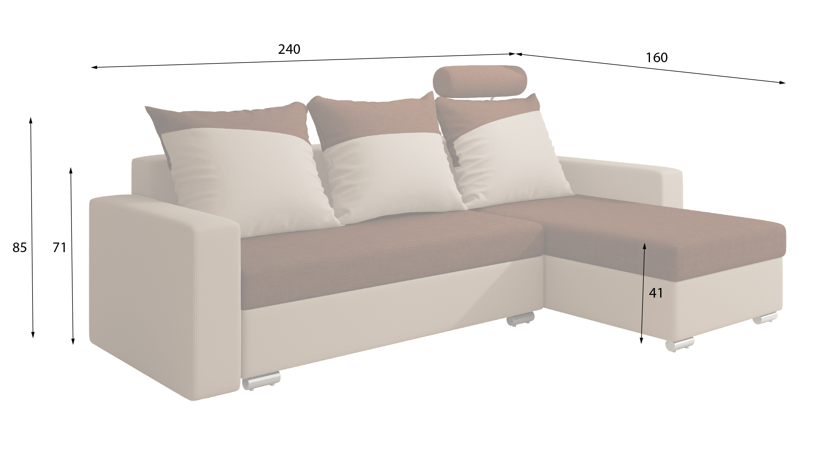 Rohová sedačka Maratto (hnedá + tmavohnedá) (P) s výškou 85 cm a hĺbkou 160 cm je štýlovým a príťažlivým kúskom nábytku, ktorý poskytne dostatok priestoru na oddych a relax po náročnom dni. Sedačka má predĺženú časť s hlavovou opierkou v tvare valca a má aj funkciu rozkladu. Sedačka tiež disponuje úložným priestorom na posteľnú bielizeň a iné doplnky. Je vyplnená penou T2544 a vankúše majú zips. Konštrukcia sedačky je z drevených materiálov, zatiaľ čo vankúše sú z polyuretánovej peny s hustotou 25 kg/m³. Sedačka má plochu spania 200x130 cm, výšku od zeme po sedaciu časť 41 cm, výšku od zeme po operadlo 71 cm a výšku operadla 44 cm. Šírka opierok rúk je 20 cm a počet vankúšov je 3. Sedačka má nožičky vpredu kovové a vzadu plastové. Tkanina Sawana, použitá na čalúnenie sedačky, je ľahká, ale odolná s jemnou štruktúrou a vysokou odolnosťou. Tkanina Neo, použitá na čalúnenie opierok, má živé farby a jemnú štruktúru, ktorá dobre zapadne do každého interiéru. Sedačka sa dodáva v troch balíkoch s rôznymi rozmermi a váhami.