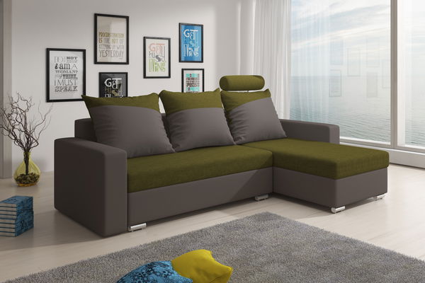 Rohová sedačka Maratto (zelená + tmavosivá) (P)