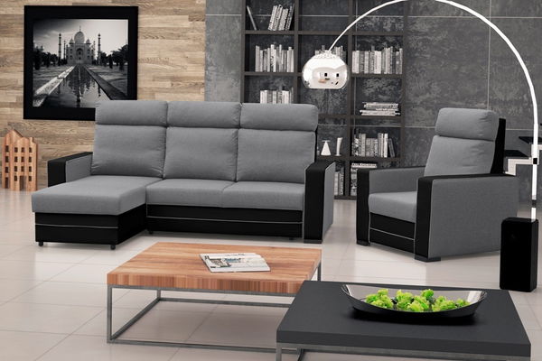 Rohová sedačka Maurita (svetlosivá + čierna) (L)