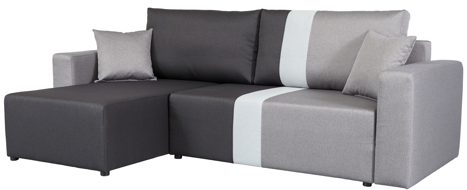 Rohová sedačka Max s moderným farebným prevedením skvele zapadne do Vašej obývacej izby. Sivú a farbu grafit oddeľuje bledý pás. Je vyrobená z kvalitného šenilu Etna. Systém automat zaručuje jednoduché rozloženie sedačky, čím vznikne plocha na spanie. Sedačka obsahuje aj úložný priestor na odloženie posteľného prádla. V cene sú aj dva malé vankúšiky.