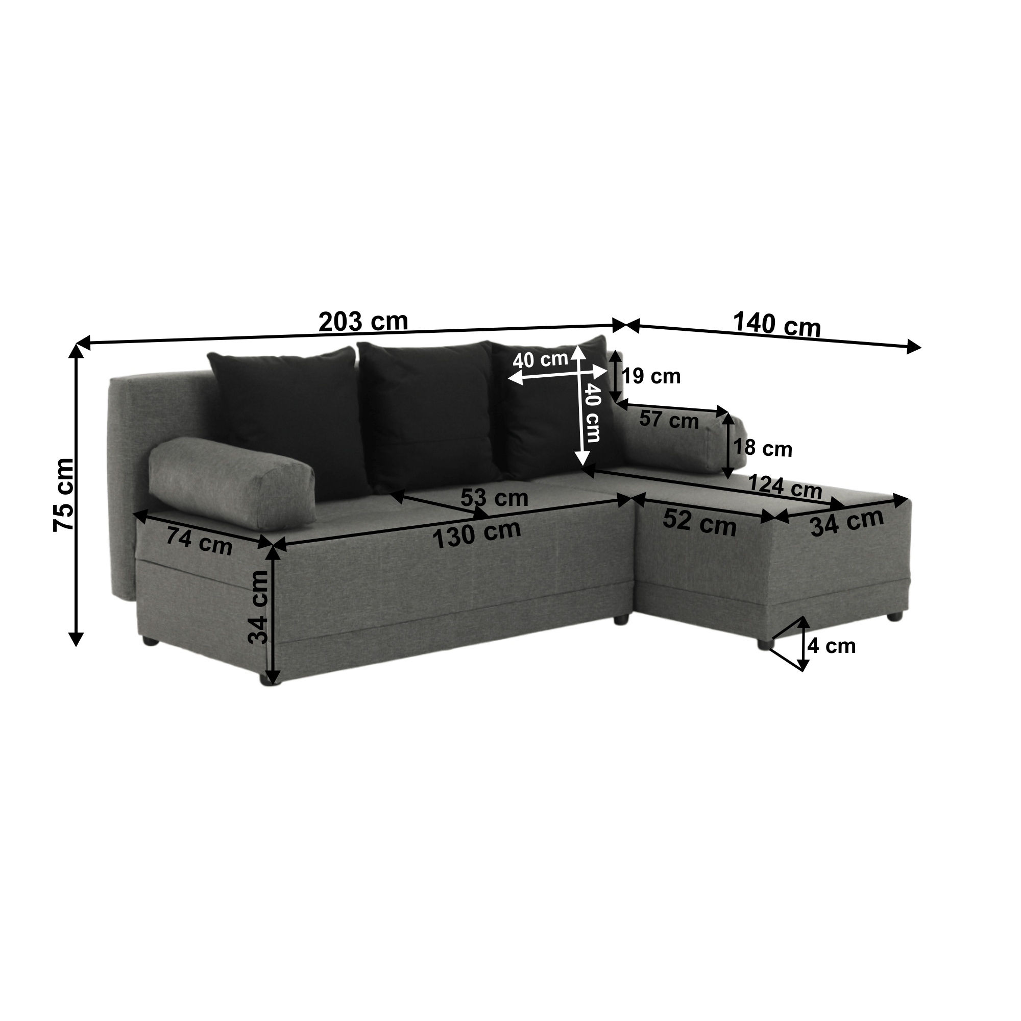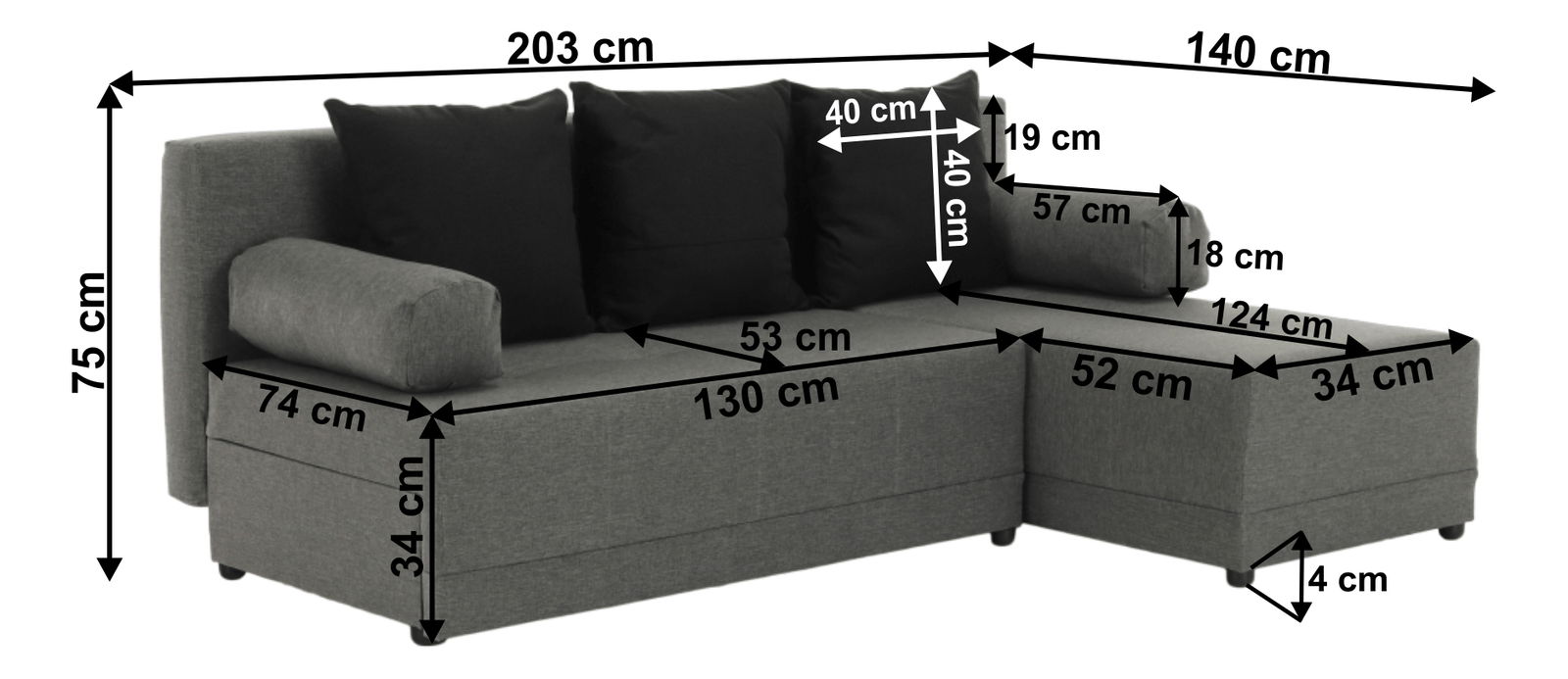 Rohová sedačka Maxius (sivá + čierna) (P) s výškou 75 cm a hĺbkou 140 cm v kombinácii Inari 91 sivá a Inari 100 čierna je dokonalým kúskom pre každú obývaciu izbu. Sedačka ponúka plochu na spanie o veľkosti 127 x 203 cm, výšku sedu 37 cm, hĺbku sedu 53/74 cm a výšku spodného priestoru od podlahy 4 cm. Sedáčka je vyrobená z odolnej látky s odolnosťou proti oderu testovanou podľa Martindale 59 000 oderov. Kombinácia sivej a čiernej farby dodáva sedačke moderný vzhľad. Sedačka má 3+2 vankúše a výplň z molitánu. Nosnosť na osobu je 90 kg. Sedačka má tri opierkové vankúše a dva vankúše zastupujúce opierky na ruky. Je vybavená úložným priestorom, dekoratívnym šitím a dodáva sa v demonte. Táto rohová sedačka je ideálna pre tých, ktorí hľadajú pohodlie a moderný dizajn v jednom kúsku nábytku.