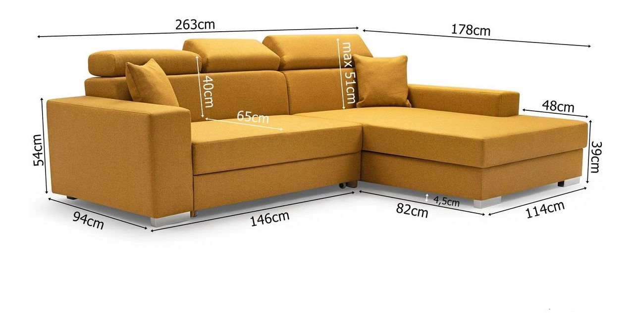 ZobraziťRohová sedačka Mayola v svetlomodro-šedej farbe je priestranná a pohodlná sedacia súprava s nastaviteľnou opierkou hlavy. Sedačka má mnoho úložného priestoru a dá sa rozložiť na príležitostné spanie. Je k dispozícii v ľavom alebo pravom prevedení a v niekoľkých farebných variantoch. Sedačka Mayola má kvalitnú textilnú kostru z tkaniny Inari 87 + Soft 11, ktorá je odolná voči roztrhnutiu a oderu. Soft poťahová látka má vysokú odolnosť a je ľahká na čistenie. Sedačka má konštrukciu z drevotriesky a lamino dosky, pružinový systém je falistý a výplňou sedačky je pena T-30. Sedačka má aj praktickú funkciu úložného priestoru a nožičky sú z plastu v chrómovej farbe. Plocha na spanie je 211 x 130 cm, hĺbka sedu je 62 cm a výška sedu je 40 cm. Rozmery balíka č. 1 sú 178x119x76 cm/90 kg a rozmery balíka č. 2 sú 147x96x72 cm/80 kg.