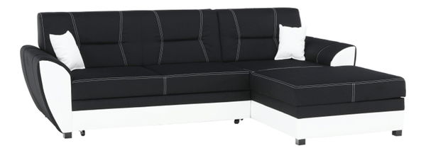 Rohová sedačka Menkar (P) je vyrobená z kvalitnej ekokože v bielej farbe a textilie Nemo 17 v čiernej farbe. Jej rohový a rozkladací dizajn umožňuje využitie priestoru podľa potreby a poskytuje aj úložný priestor. Sedačka má zaoblené opierky a výrazne prešívanú sedaciu a operadlovú časť, čím zaručuje pohodlné sedenie aj prespanie. Plocha na spanie má rozmery 200 x 120 cm. Výška sedadla je 41 cm a hĺbka sedenia 57 cm. Sedačka má nosnosť 90 kg a výšku nožičky 5 cm. Je vybavená vankúšmi s rozmernými parametrami 32 x 24 cm a výškou operadla 42 cm. Rohová sedačka Menkar (P) je ideálnym doplnkom do vášho interiéru, ktorý spojuje eleganciu, komfort a praktickosť v jednom produkte.