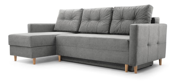 Rohová sedačka Meshire (svetlosivá) (L) s výškou 96 cm a hĺbkou 146 cm je ideálnym doplnkom pre každú obývaciu izbu. Vzhľad č. 9 dodáva moderný a elegantný nádych vášmu interiéru. Konštrukcia sedačky je vyrobená z masívneho dreva a drevotriesky, čo zaručuje jej pevnosť a odolnosť. Sedadlová časť obsahuje kvalitnú bonellovú pružinu s hrúbkou drôtu 2,4 mm a penovú výplň typu T 30 s hrúbkou 3 cm pre maximálny komfort. Operadlová časť je vyplnená penou a silikónom. Podporný mechanizmus otvárania umožňuje jednoduché rozloženie sedačky na plochu spania 209 x 140 cm s typom rozkladu delfín. Sedačka je zozadu potiahnutá látkou a tým pádom je vhodná aj pre priestorovo náročnejšie izby.