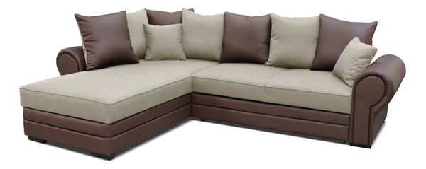 Pekná rohová sedačka s výraznou zaoblenou opierkou rúk. Sedacia časť sa skladá z pur peny a vlnitých pružín. Sedačka má možnosť rozkladu a má taktiež aj užitočný úložný priestor. Sedačka je potiahnutá koženkou a šenilom. Ľavé prevedenie sedačky.