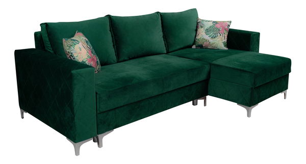 Rohová sedačka Misrin (zelená) (P) s výškou 86 cm a hĺbkou 145 cm je ideálnou voľbou pre váš obývací priestor, pretože poskytuje komfort, oddych a kľud. Sedačka je navrhnutá tak, aby pôsobila exkluzívne a elegentne s dekoratívnym bočným prešívaním. Konštrukcia sedačky je kvalitná a drevená, nožičky sú kovové s povrchovou úpravou chrómu. Výplň tvorí kombinácia pružiny falista + purpeny T30. Sedačka má rozloženie typu automat a zadná strana je tiež čalúnená látkou. Výška nožičiek je 10 cm a nosnosť sedačky je okolo 130 kg. Sedačka je dodávaná s dekoratívnymi vankúšikmi a má plochu na spanie 197 x 140 cm. V balení nájdete tri balíky, ktoré je možné jednoducho zmontovať do 15 minút.