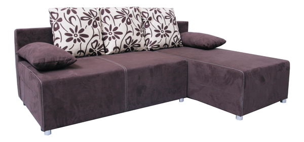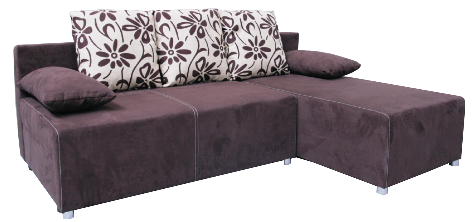 Jednoduchá no atraktívna rohová sedačka je celočalúnená kvalitným hnedým šenilom. Kontrastné prešitie a chromové nožičky zkrášľujú celý vzhľad sedačky. Vzorované vankúšiky a postranné vankúšiky na opretie rúk sú v cene. Je rozkladacia pre prípad, že by ste chceli na nej prenocovať. Postelné prádlo uložíte do praktického úložného priestoru.