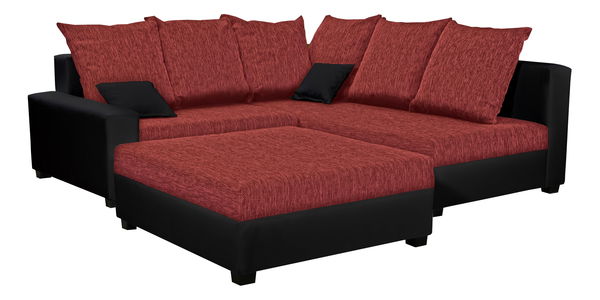 Rohová sedačka Monarda (červená + čierna) (s taburetkou) (P)