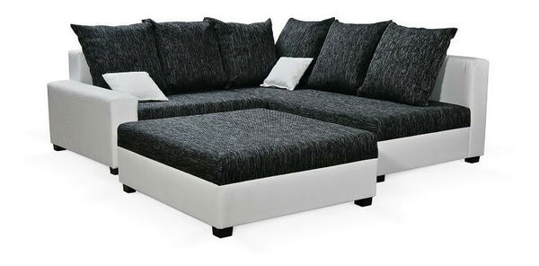 Rohová sedačka Monarda (čierna + biela) (s taburetkou) (P)
