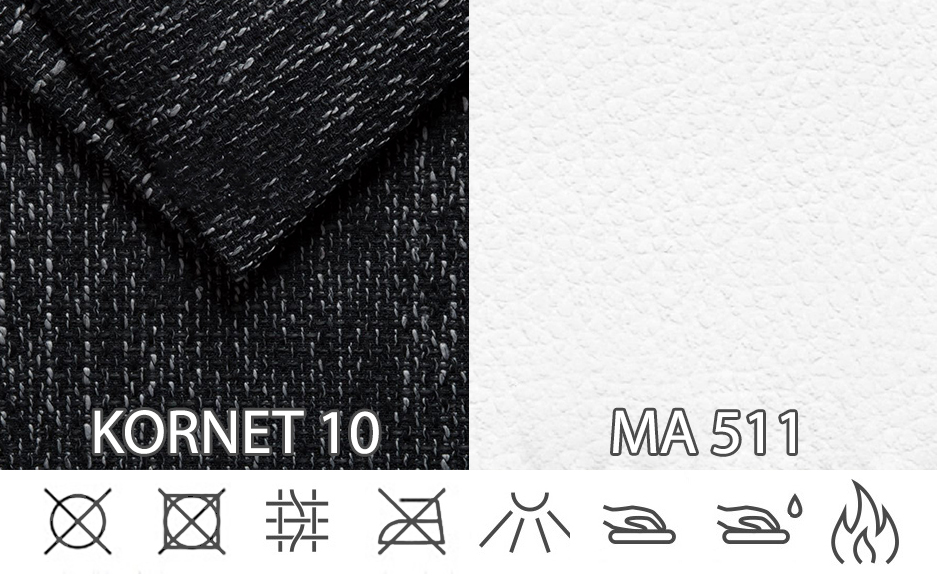 Tkanina Kornet je husto tkaná látka so štruktúrou a melírovaným efektom. Hodí sa na pohovky, kreslá a vankúše. Tkanina je nanáročná na údržbu. Zloženie: 90% polyester 10% akryl. Gramáž: 470g/m +/-5 %.