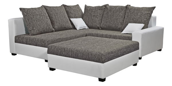 Rohová sedačka Monarda (sivá + biela) (s taburetkou) (L)