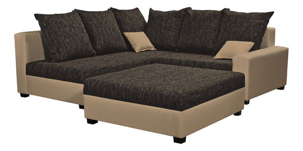 Rohová sedačka Monarda (tmavohnedá + béžová) (s taburetkou) (L)