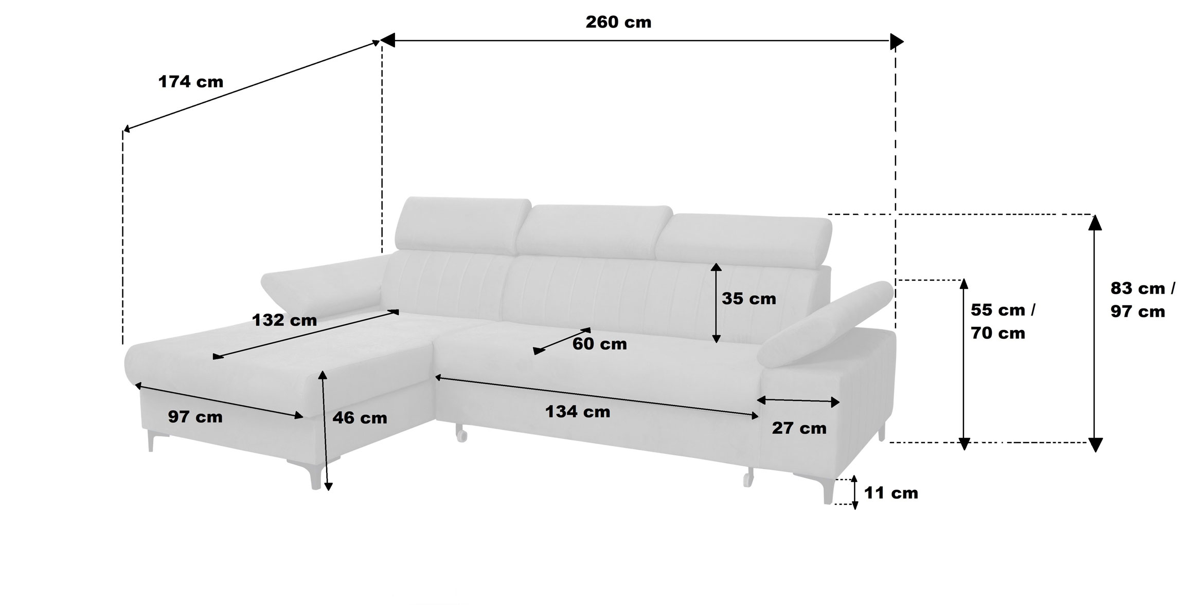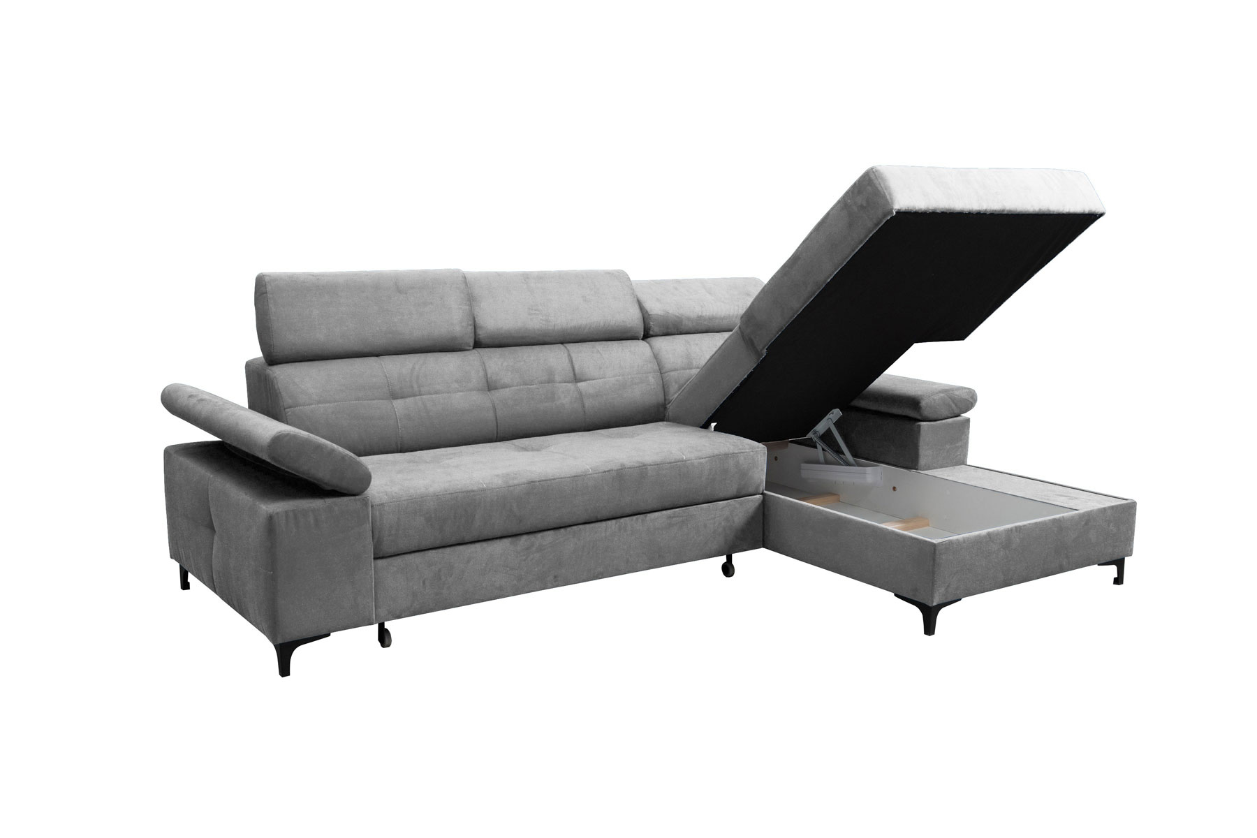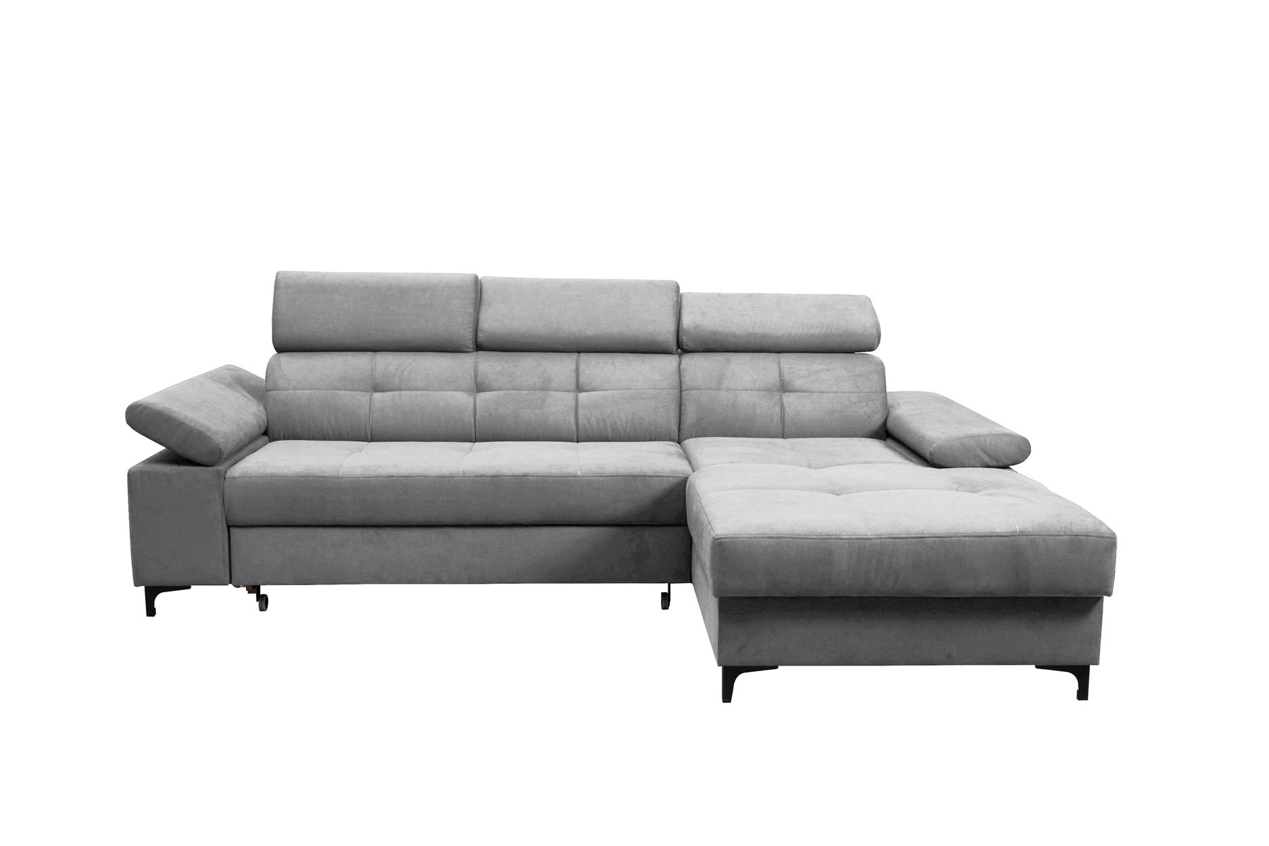 Rohová sedačka Nicholle (svetlosivá) (P) je moderným a elegantným doplnkom pre vašu obývačku. Je vyrobená z kvalitnej látky a má svetlosivú farbu, ktorá sa hodí do každého interiéru. Táto rohová sedačka má úložný priestor, v ktorom sa dajú uložiť vaše veci. Výplň sedačky je vyrobená z peny a falických pružín, čo zaručuje pohodlné sedenie. Rozmery sedačky sú 260 cm x 174 cm x (83-97) cm (D x H x V). Táto rohová sedačka sa ľahko premení na pohodlné lôžko pre hostí. Výrobok má nožičky z chrómu v čiernej farbe a čalúnený chrbát. Rohová sedačka Nicholle je skvelou voľbou pre každého, kto hľadá moderný a praktický nábytok do svojej obývačky. Tento výrobok dodávame v demonte.