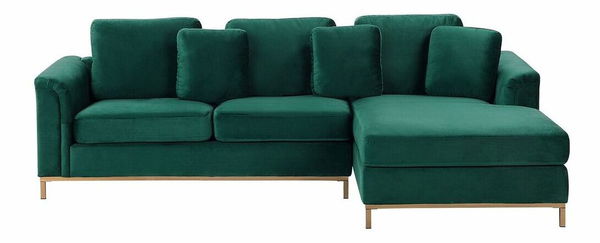 Táto elegantná rohová pohovka s moderným dizajnom sa hodí do každého moderného interiéru. Vďaka dlhému ležadlu, ktoré je umiestnené na ľavej strane z pohľadu sediacej osoby, poskytuje dostatok priestoru na oddych. Celá pohovka je čalúnená polyesterovým zamatom. Stabilné kovové nohy dodávajú moderný vzhľad inak tradičnému dizajnu pohovky. Vankúše majú snímateľné poťahy pre jednoduché čistenie.