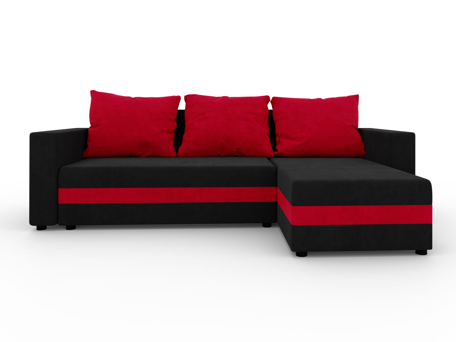 ZobraziťRohová sedačka Safino (čierna + červená) (P) s výškou 85 cm a hĺbkou 152 cm je dokonalým doplnkom do vašej obývačky. Pekne vypracovaný chrbát umožňuje jej umiestnenie kdekoľvek. Sedačka sa jednoducho rozloží na plochu na spanie s rozmermi 202 x 132 cm. Tri veľké vankúše so zipsom uľahčujú údržbu. Vnútorný rám je vyrobený z dreva a drevotriesky. Sedadlo je naplnené polyuretánovou penou. Nožičky sú plastové. Sada sa skladá z 3 balíkov s celkovými rozmermi balíka č. 1: 145x75x70 cm/45 kg, balíka č. 2: 135x80x55 cm/40 kg a balíka č. 3: ___.