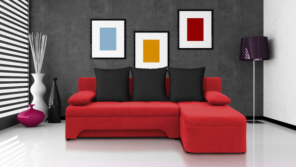 Rohová sedačka Saline červená + čierne vankúše (2 úložné priestory, pena)