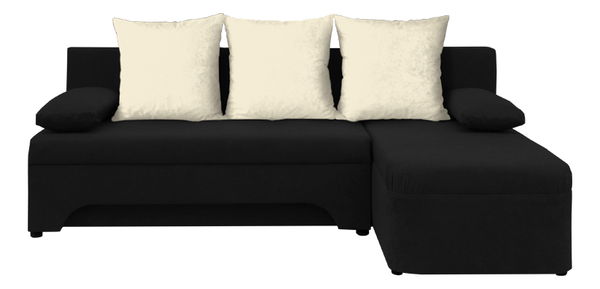 Rohová sedačka Saline čierna + krémové vankúše (1 úložný priestor, pena)