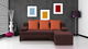 Rohová sedačka Saline hnedá + oranžové vankúše (1 úložný priestor, pena)