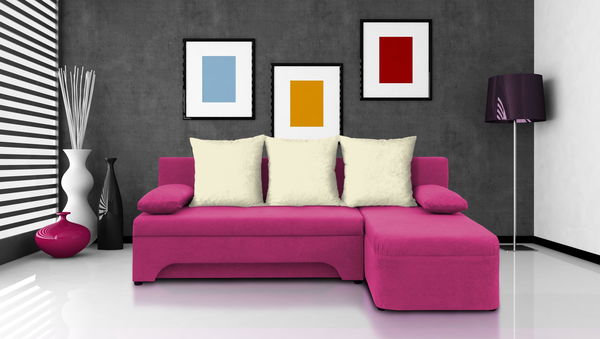 Rohová sedačka Saline ružová + krémové vankúše (2 úložné priestory, pena)