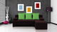 Rohová sedačka Saline tmavohnedá + zelené vankúše (2 úložné priestory, pena)