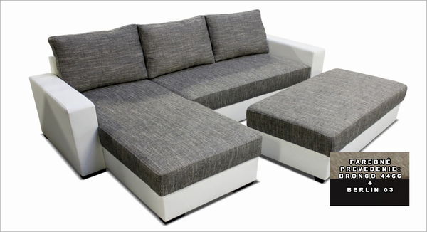 Rohová sedačka Navara L2 je vhodná do menších obývacích izieb. Je dodávaná aj s taburetkou, ktorá cez deň môže slúžiť na sedenie, poprípade vyloženie nôh pri oddychovaní a v noci jej prisunutím k sedačke vzniká pohodlná spacia plocha. Je nerozkladacia a bez úložného priestoru. Sedačka je čalúnená koženkou bielej alebo hnedej farby pričom sedacia časť a vankúše sú potiahnuté kvalitným šenilom sivej poprípade hnedej farby. Plastové nohy sú šetrné k podlahe. Šírka operadla (bočnice) je 17,5 cm.