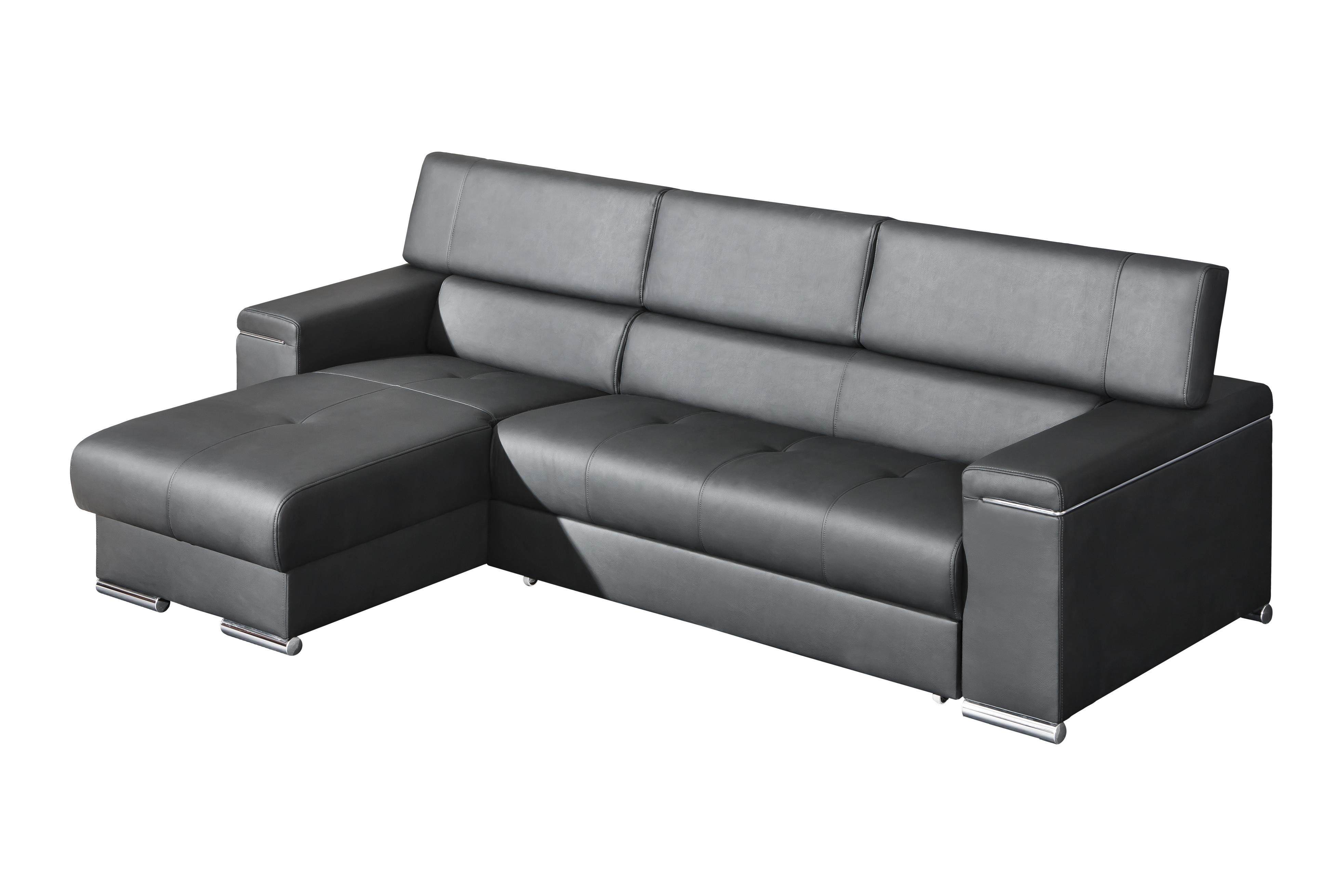 Rohová sedačka Sander z čiernej ekokože je vhodná nie len do modernej obývačky ale aj do kancelárií a pod. Príjemným spestrením čiernej je strieborná farba nožičiek a detailov na opierkach. Sedačka s úložným priestorom je vhodná aj na spanie. Dostupná v ľavom aj pravom prevedení. Sedenie je pružinové.