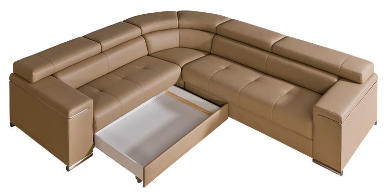 Rohová sedačka Sander je dostatočne priestranná na to, aby sa na nej pohodlne usadila celá rodina alebo priatelia. Elegantný dizajn ekokože dopĺňajú detaily na opierkach striebornej farby a taktiež nožičky. Opierky hlavy sú polohovateľné. Plocha spania 200 x 121 cm je viac ako veľkorysá a vaši hostia sa pohodlne vyspia. Úložný priestor môžete využiť na odkladanie náhradných paplónov a vankúšov. Dostupná je v ľavom aj pravom prevedení. Sedenie je pružinové.