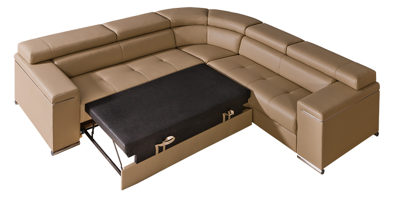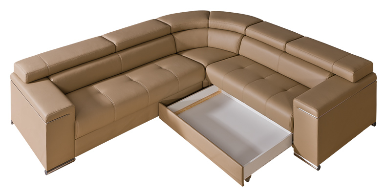 Rohová sedačka Sander je dostatečně prostorná na to, aby se na ní pohodlně usadila celá rodina nebo přátelé. Elegantní design ekokůže doplňují detaily na opěrkách stříbrné barvy a také nožičky. Opěrky hlavy jsou polohovatelné. Plocha spaní 200 x 121 cm je více než velkorysá a vaši hosté se pohodlně vyspí. Úložný prostor můžete využít k odkládání náhradních přikrývek a polštářů. Dostupná je v levém i pravém provedení. Sezení je pružinové.