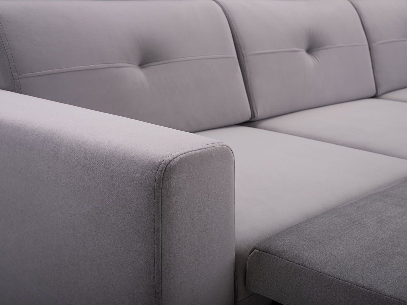 ZobraziťRohová sedačka Sanfew (sivá) (L) výška 99 cm hĺbka 170 cm Bluvel 03 je vyrobená z veľmi príjemnej velúrovej látky, ktorá je dostupná vo viacerých farebných prevedeniach. Táto sedačka má jednoduchý tvar, ktorý sa hodí do každej obývačky. Poskytuje extra pohodlie vďaka svojej veľkej úžitkovej ploche a pohyblivým opierkam hlavy. Sedačku zdobia prešívané chrbtové vankúše a naturálne drevené nožičky. Tkanina Bluvel je hustá nábytková látka typu velúr. Je mimoriadne jemná a zamatová na dotyk a veľmi odolná proti oderu. Má špeciálnu úpravu Water repellent a Pet friendly, ktorá chráni tkaninu pred rýchlym absorbovaním tekutín. Táto sedačka má výplň sedadla z peny PU a pružiny faliste a výplň operadla z peny PU. Jej operadlo je čalúnené a má ozdobné prvky. Sedačka má výšku korpusu (zadnej časti) 99 cm, výšku sedu 43 cm a hĺbku sedu 57 cm. Nohy sú drevené a naturálneho odtieňa. Ide o rozkladaciu sedačku s funkciou spania "automat" a pohyblivými opierkami hlavy. Má jedno úložné miesto, plochu spania 202x130 cm a možnosť umiestnenia do priestoru. Balík č.1 má rozmery (š.v.h): 134x76x95 cm/57 kg, balík č.2 má rozmery (š.v.h): 167x70x76 cm/38 kg a balík č.3 má rozmery (š.v.h): 95x30x48 cm/16 kg.