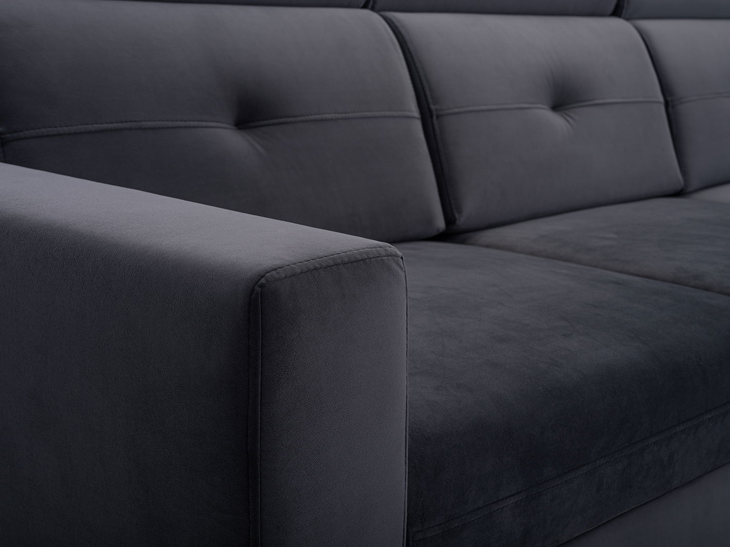 ZobraziťRohová sedačka Sanfew (tmavosivá) (L) je vyrobená z príjemnej velúrovej látky a je k dispozícii v rôznych farebných prevedeniach. Sedačka má jednoduchý tvar, ktorý sa hodí do každej obývačky. Poskytuje extra pohodlie vďaka svojej veľkej úžitkovej ploche a pohyblivým opierkam hlavy. Krásne prešívané chrbtové vankúše a naturálne drevené nožičky dodávajú sedačke štýl. Tkanina Bluvel, ktorá je použitá na poťahovú látku, je hustá, velúrového typu, mimoriadne jemná a zamatová na dotyk. Látka je veľmi odolná proti oderu a má špeciálnu úpravu Water repellent a Pet friendly. Výplň sedadla pozostáva z peny PU a pružiny faliste, výplň operadla z peny PU. Sedačka má rozkladaciu funkciu a úložný priestor. Taktiež má pohyblivé opierky hlavy a funkciu spania "automat". Balenie obsahuje tri balíky, ktoré sú ľahko prepraviteľné.