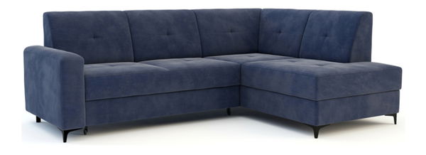 Rohová sedačka Scandal (tmavomodrá) (P) s výškou 85 cm a hĺbkou 171 cm je ideálnym prvkom pre elegantný dizajn vášho interiéru. Táto sedačka disponuje skladacím mechanizmom delfín, ktorý umožňuje premeniť ju na lôžko na občasné prespanie. Okrem toho je vybavená úložným priestorom a kovovými nožičkami, ktoré dodávajú miestnosti moderný nádych. Sedačka je vyrobená z kvalitnej zamatovej látky Riviera, ktorá je neskutočne jemná na dotyk a zároveň pevná a odolná na každodenné použitie. Tkanina Riviera je uspokojením pre najnáročnejších zákazníkov vďaka použitým najlepším vláknam. Svojimi vlastnosťami patrí medzi najvyberanejšie interiérové poťahové látky. Konštrukcia rámu je z drevotriesky a dreva, výplň sedadla tvoria vlnové pružiny a pena. Sedačka je odolná proti oteru s počtom cyklov Martindale 100000. Plocha spania dosahuje rozmerov 123 x 190 cm a rozklad je typu "vozík". Nohy sú kovové a čierne a výška sedu je 45 cm, hĺbka sedu je 59,5 cm. V balení sú dva balíky: prvý má rozmery 156 x 86 x 79 cm a váži 58,5 kg, druhý má rozmery 172 x 92 x 78 cm a váži 53 kg.