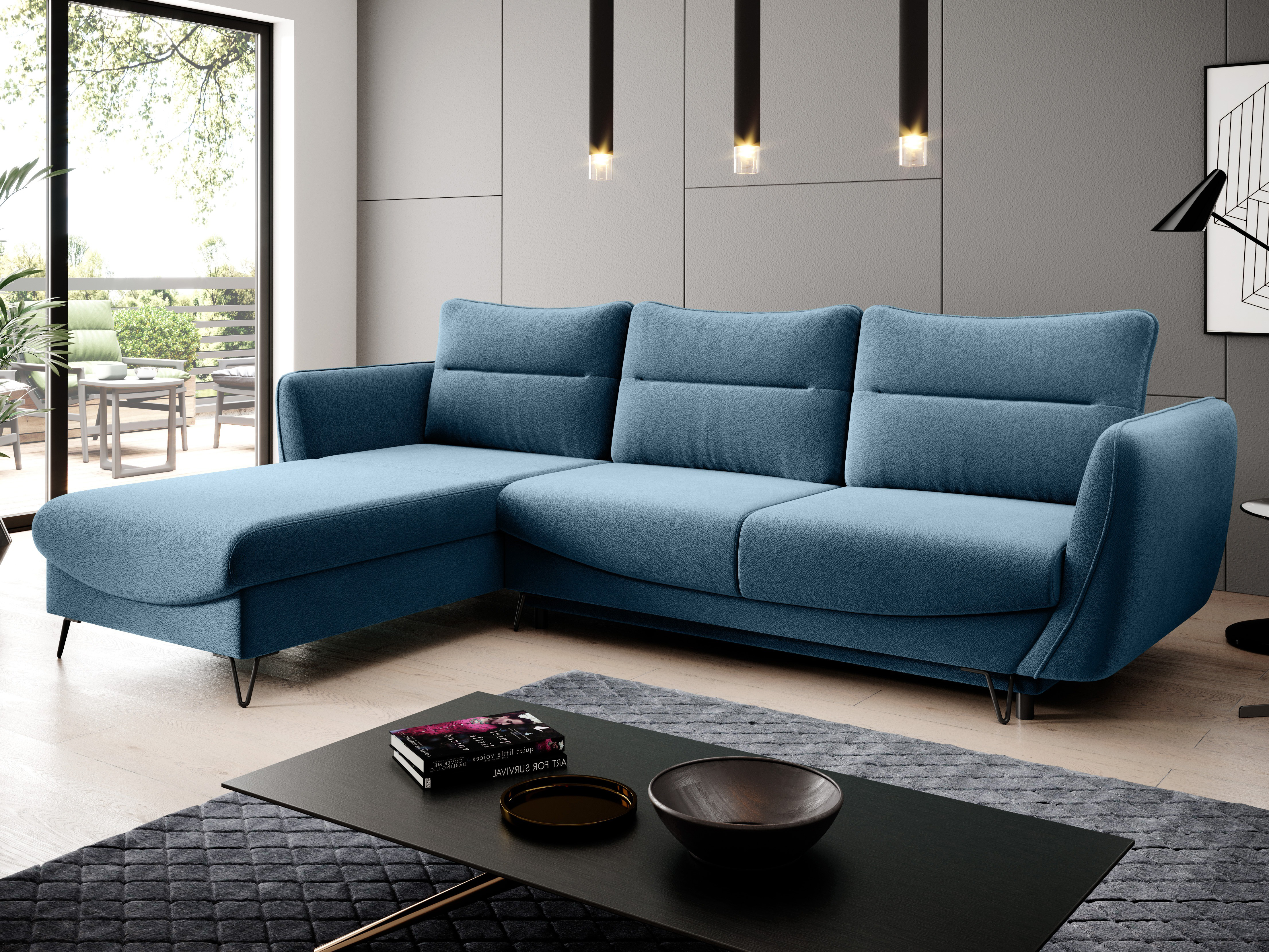 Rohová sedačka Scottie 38 (modrá) je ideálnou voľbou pre tých, ktorí hľadajú pohodlné, ale zároveň štýlové riešenie pre svoj domov. Táto sedačka má výšku 100 cm, hĺbku 201 cm a šírku 276 cm. Materiál, z ktorého je vyrobená, je borovica, polyester a vlnová pružina typu B. Výplň tvoria taštičková pružina a pena HR, čo zaručuje maximálny komfort pri sedení. Rohová sedačka Scottie ponúka plochu spania v rozmeroch 240x123 cm a má možnosť rozloženia pomocou automatu. Ďalšou výhodou je úložný priestor, ktorý poskytuje dostatok miesta pre uloženie vecí. Výška sedu je 43 cm, hĺbka sedu 57 cm a výška s vankúšmi je 100 cm. Sedacia súprava má nožičky z ocele v čiernej farbe a zadná strana je čalúnená. Rozmery balíka č. 1 sú 205x100x65 cm/69 kg a rozmery balíka č. 2 sú 165x80x50 cm/77 kg. Rohová sedačka Scottie je kvalitným a praktickým nábytkom, ktorý určite obohatí Váš interiér.