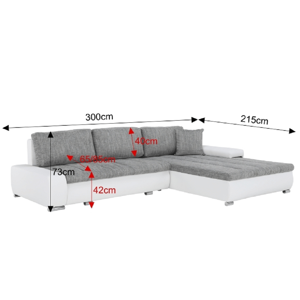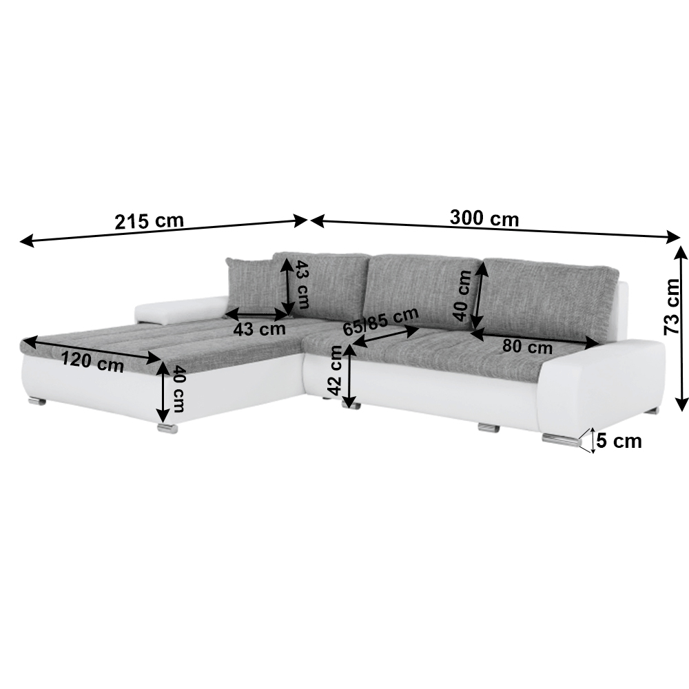 Rohová sedačka Tim (P) je univerzálny kúsok nábytku, ktorý určite zaujme každého svojou modernou bielou ekokožou a sivým melírom na sedacej ploche. Sedačka má výšku 73 cm a hĺbku 215 cm, s výškou sedu 42 cm a hĺbkou sedu s vankúšmi 65 cm a bez vankúšov 85 cm. Sedacia časť obsahuje bonelové pružiny a vankúše sú už zahrnuté v cene. Textilná časť má odolnosť 55 000 oderov podľa testu Martindale, zatiaľ čo ekokoža má odolnosť 100 000 oderov. Sedačka má rozmer 300x215x72 cm a plochu na spanie 150x240 cm. Šírka otomanu je 120 cm a výška spodného priestoru od podlahy je 5 cm. Nosnosť na osobu je 90 kg. Vďaka svojim vlastnostiam je táto sedačka ideálnou voľbou pre každého, kto hľadá pohodlný a moderný kúsok nábytku pre svoje obývacie priestory.