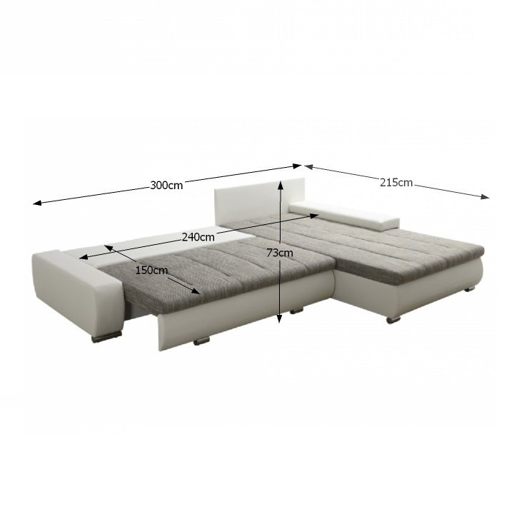 Rozmery (ŠxHxV): 300x215x72 cm, plocha na spanie (ŠxD): 150x240 cm