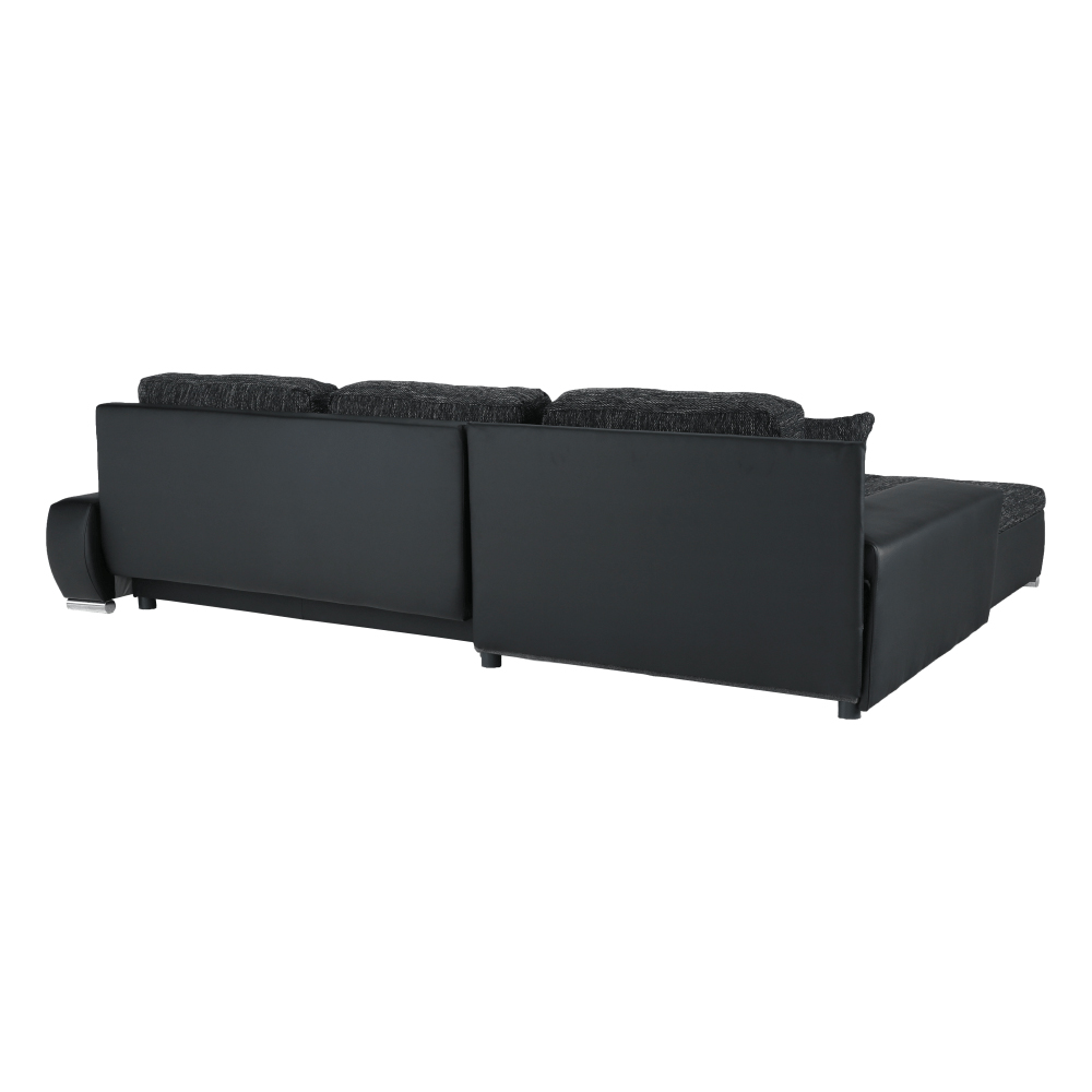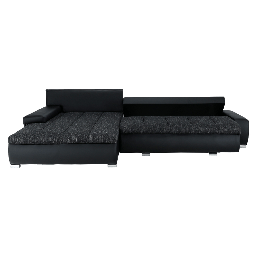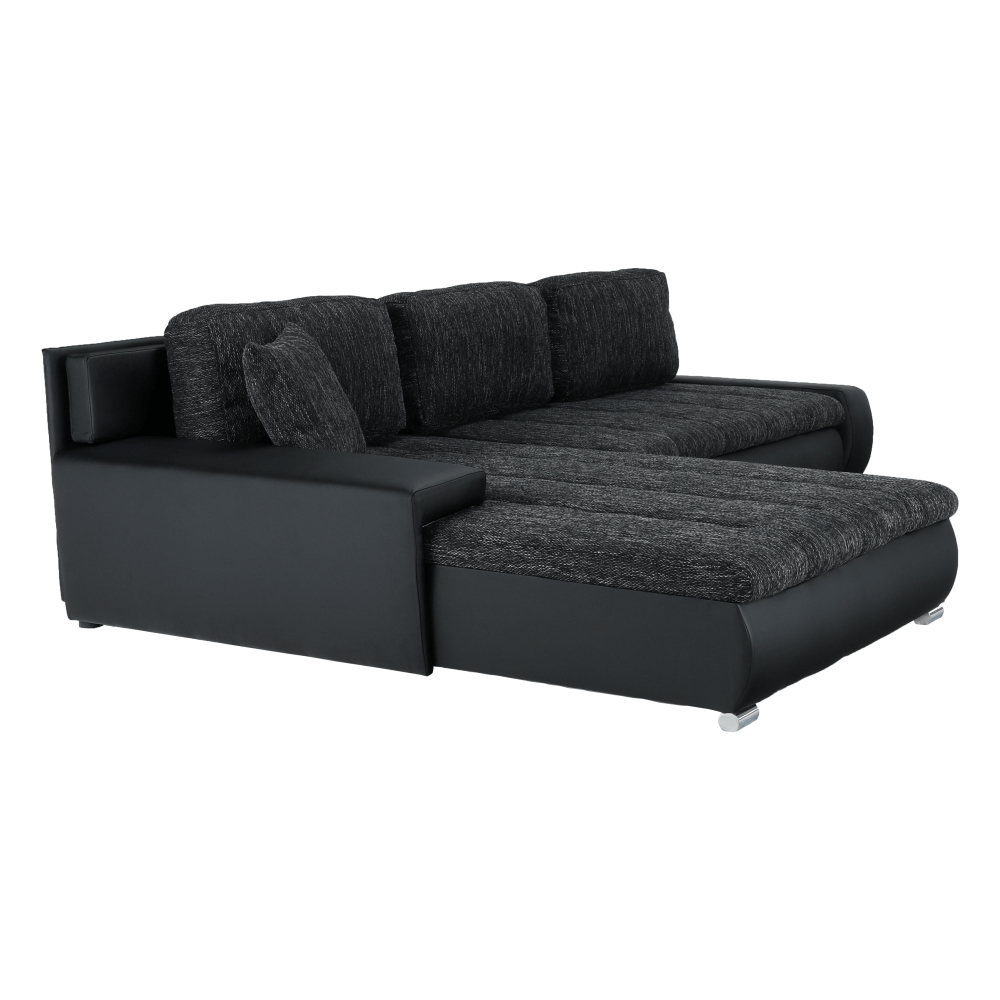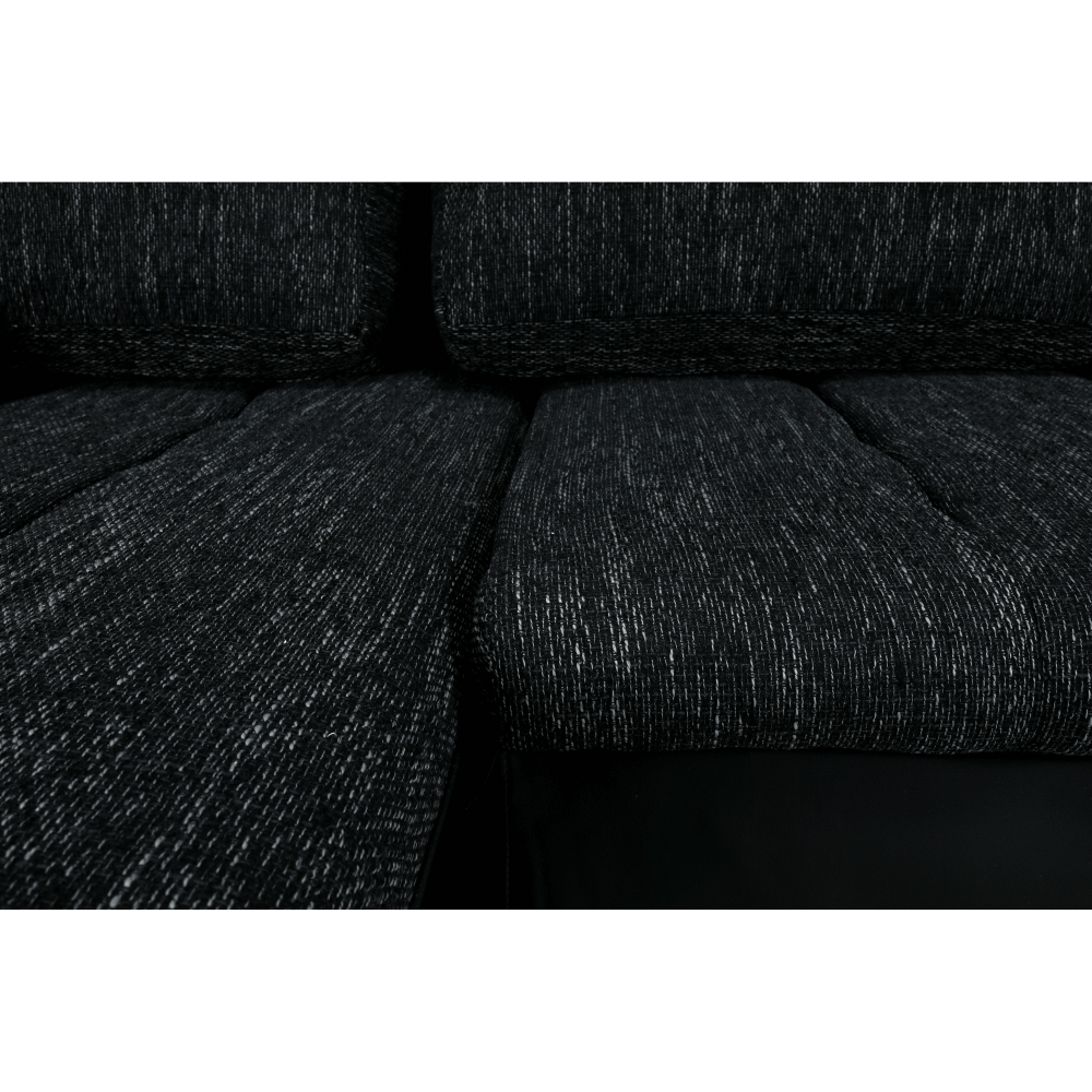 Rohová sedačka Tolba (P) je tu pre vás, ak hľadáte extra životný priestor. S šírkou 300 cm poskytuje dostatok miesta na sedenie pre celú rodinu. V prípade potreby môžete využiť aj príležitostné lôžko, ktoré sa skrýva v sedačke. Po rozložení sa vytvorí plocha na spanie s rozmerom 150 x 240 cm, kde sa pohodlne vyspia aj dvaja ľudia na priestor nároční. Sedačka Tolba má aj rozmerný úložný priestor, ktorý ocenia tí, ktorí potrebujú zúžitkovať každý centimeter bytu alebo domu. Sedačka Tolba je univerzálna a dá sa zmontovať s otomanom na pravej alebo ľavej strane. Materiál čiernej ekokože a látky Nevada 10 čierny melír je odolný a nenáročný na údržbu. Rozmery sedačky sú (ŠxVxH) 300x215x73 cm, s plochou na spanie ŠxD 150x240 cm a šírkou otomanu 120 cm. Výška sedu je 42 cm a hĺbka sedu s vankúšmi je 65 cm a bez vankúšov 85 cm. Sedačka Tolba je dodávaná v demonte a má nosnosť na osobu 90 kg. Výplň tvoria pružiny falista/PUR pena.