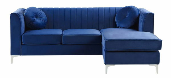 Rohová pohovka s elegantným operadlom, vysokými bočnými opierkami, luxusným zamatovým čalúnením a lesklými striebornými nohami je dokonalým doplnkom do každého elegantného obývacieho priestoru. Dva okrúhle vankúše poskytujú chrbtici a hlave oporu pri sedení. Vďaka univerzálnemu dizajnu si môžete vybrať medzi ležadlom na ľavej alebo pravej strane. Extra vankúšiky majú snímateľné poťahy pre jednoduchšie čistenie.