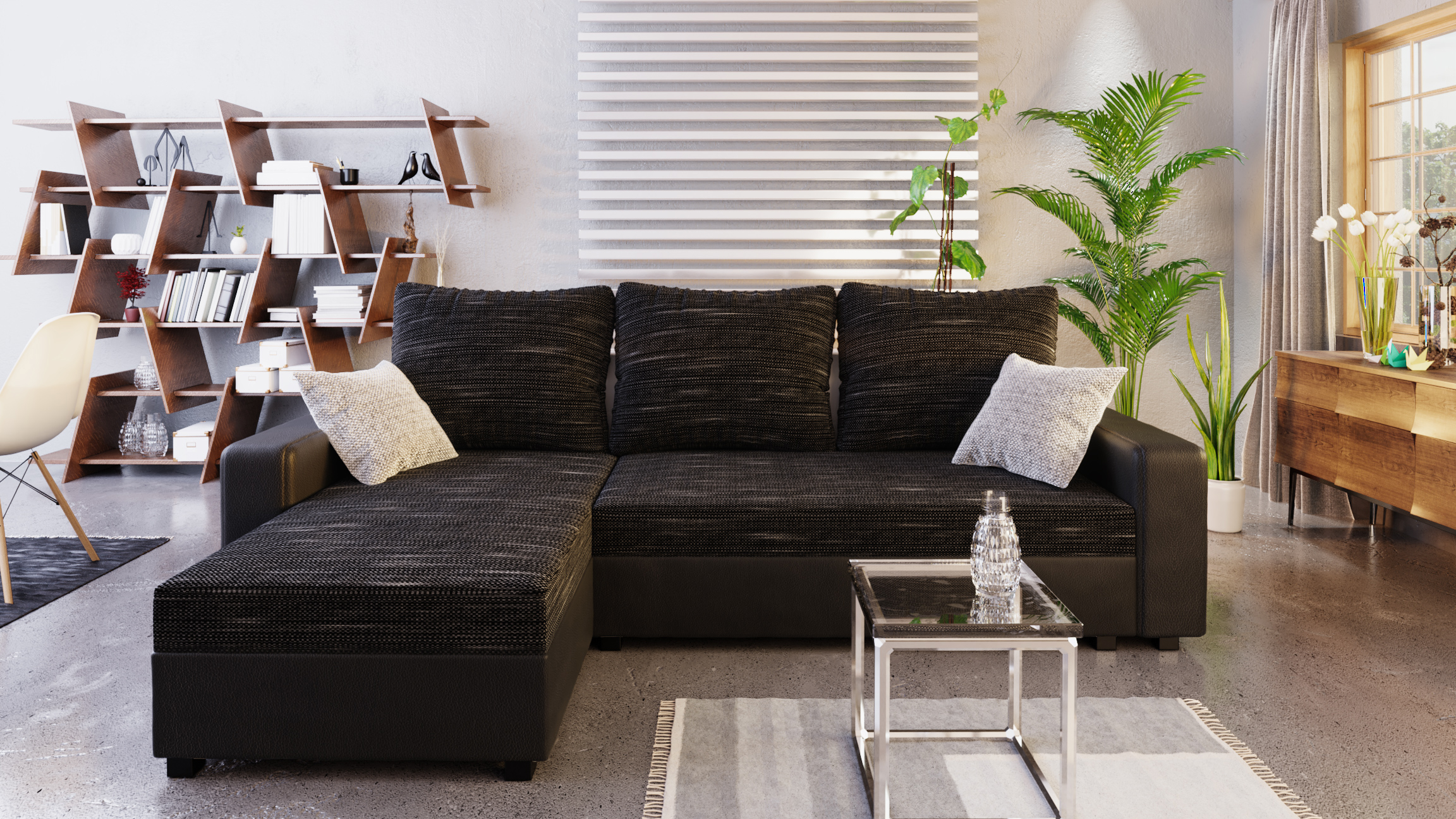 Rohová sedačka Triplite (melírovaná čierna + čierna) (L)