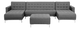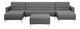 Modulárna sedacia súprava v tvare U s taburetom je ideálnym a skutočne univerzálnym kusom nábytku do vašej obývacej izby. Súprava pozostáva z 3-miestnej pohovky a dvoch bočných ležadiel a vďaka nastaviteľnému operadlu ju možno jednoducho zmeniť na pohodlné lôžko. Táto súprava je celá čalúnená vysokokvalitnou a štýlovou sivou látkou s elegantným prešívaním a ponúka funkčnosť i nadčasový štýl. Celá zostava je stabilná vďaka kovovým nohám.