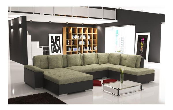 Moderná rohová celočalúnená sedačka do tvaru U v prevedení čiernej ekokože a šenilu Berlin 03. Sedačku je vhodné vďaka čalúneniu všetkých strán umiestniť aj do priestoru. Sedačka sa nedá rozložiť a nemá úložný priestor.