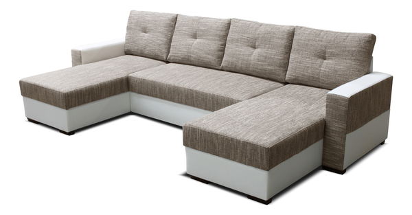 Pekná moderná rohová sedačka v tvare do U, ktorá má jednoduchý dizajn a hodí sa do akýchkoľvek interiérov. Sedačka je potiahnutá látkou a koženkou. Vnútro sedačky je vyplnené pur penou a vlnitými pružinami. Sedačka je pevná a nedá sa rozložiť. Priestor na sedenie a oddych sa dá zväčšiť prisunutím širšej taburetky. Pripojením taburetky vytvoríte plochu na prespanie. Na výber je viac farebných prevedení. Pravé prevedenie sedačky.
