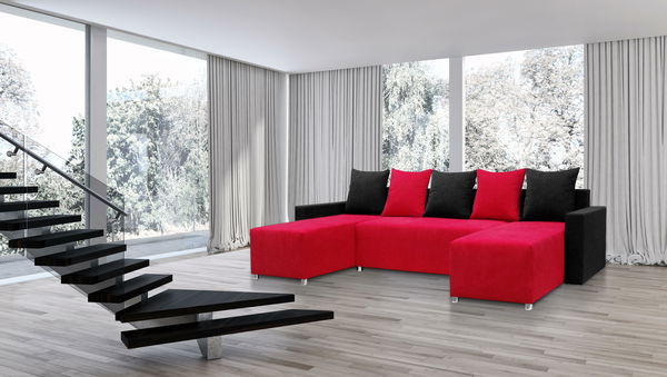 Rohová sedačka U Briston U s opierkami (čierna červená + vankúše)