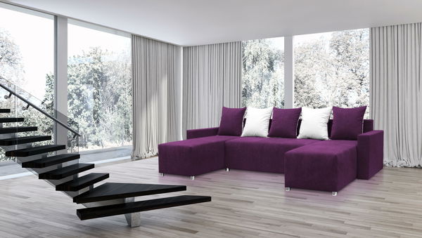 Rohová sedačka U Briston U s opierkami (fialová + vankúše)