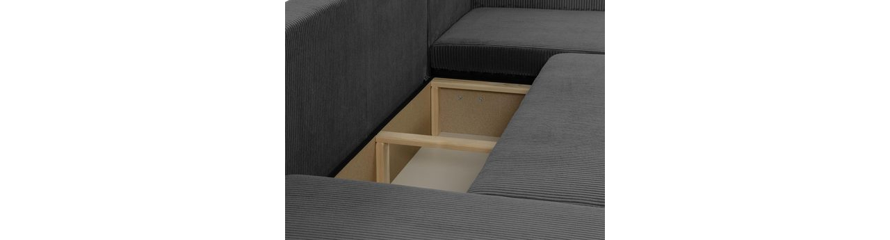- Praktický úložný priestor pod sedadlom umožní uschovať periny, vankúše či sezónne doplnky, čím pomáha udržať poriadok v obývačke. Viac o úložných priestoroch nájdete v ponuke nábytku s úložným priestorom.