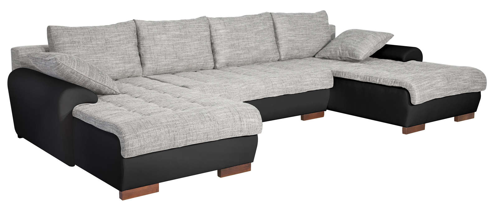 Elegantná rohová sedačka spraví z Vašej obývacej izby moderný priestor. Je dizajnovaná do tvaru písmena U, čo z nej robí univerzálnu sedačku, ktorú môžete umiestniť ako do ľavého, tak aj do pravého rohu. Je čalúnená kvalitnou koženkou čiernej farby. Matrace sú sivé, ladia spolu so sedačkou a sú vyrobené zo šenilu. Sedačka obsahuje systém automat, čo zaručuje rýchle a jednoduché rozloženie. To využijete ak chcete na sedačke prespať. Posteľné prádlo môžete skladovať priamo v sedačke v úložnom priestore.