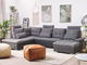Táto rohová pohovka sa stane nádherným stredobodom akejkoľvek obývacej izby. Vďaka hrubej výplni je mimoriadne pohodlná a zároveň priestranná, takže je ideálnym miestom na oddych. Sivé čalúnenie so štvorcovým prešívaním, ktoré je vyrobené z odolného polyesteru, dopĺňajú strieborné kovové nohy. Pohovka má nastaviteľné opierky hlavy, ktoré oceníte najmä počas filmových večerov. Možno ju rozložiť na pohodlnú posteľ na spanie pre hostí a veľký úložný priestor možno využiť na odkladanie rôznych textilných doplnkov.